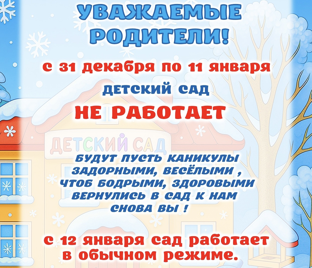 Для нас важно, чтобы Вы, доверяя нам воспитание своего ребенка, получали всю необходимую информацию о его жизни, успехах, первых победах и достижениях. Детский сад - это уникальная система, которая обеспечивает уход, присмотр, питание, образование, воспитание, и оздоровление. Ни одна система не выполняет столько функций одновременно. Мы хотели бы заверить Вас, что весь наш коллектив готов сделать пребывание Вашего ребенка у нас комфортным, его развитие успешным. Родители - это часть нашей команды. Мы верим в то, что взаимодействие детей, родителей и педагогов имеет одну цель сделать наше дошкольное образовательное учреждение для Вашего ребенка вторым родным домом.